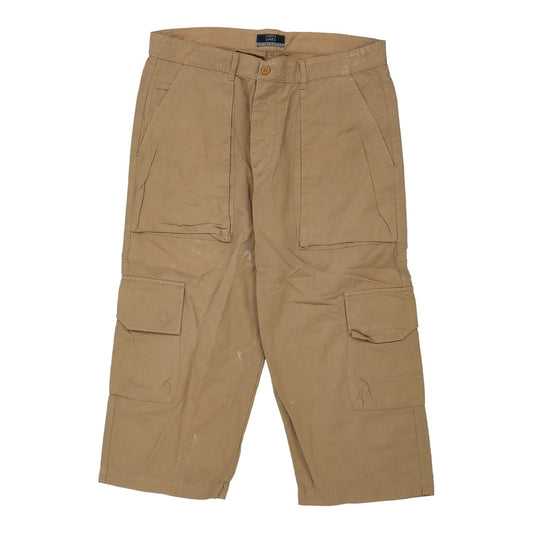Green Leaves Cargo Shorts - 36W 23L Beige Cotton