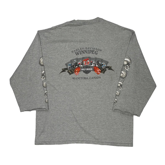 Harley Davidson Graphic Long Sleeve T-Shirt - 2XL Grey Cotton