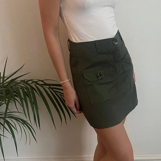 Zuiki Mini Cargo Skirt - 28W UK 8 Khaki Cotton