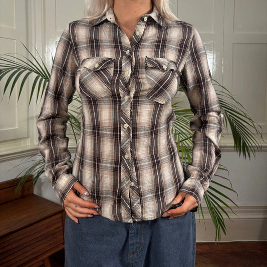 Terranova Checked Flannel Shirt - Small Brown Cotton