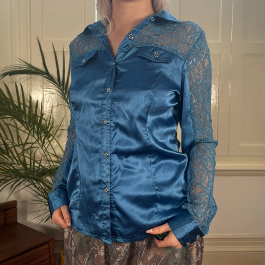 N&P Lace Shirt - Medium Blue Silk Blend