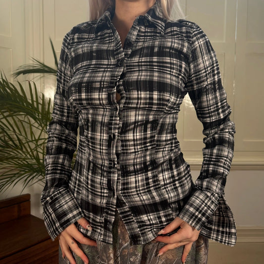Extra Me Checked Shirt - Medium Black & White Cotton Blend
