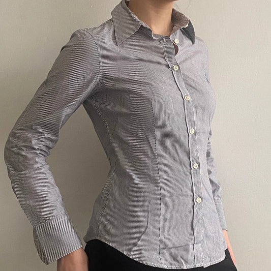 Benetton Striped Shirt - Small Grey Cotton