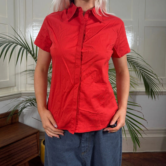 Unbranded Short Sleeve Shirt - Medium Red Cotton Blend