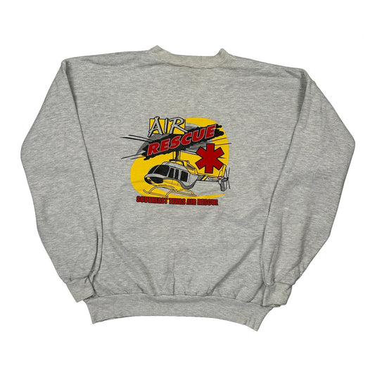 Air Rescue Hanes Graphic Sweatshirt - Large Grey Cotton Blend