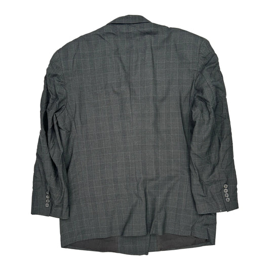 Double Breasted Burberry Checked Blazer - Large Grey Polyester