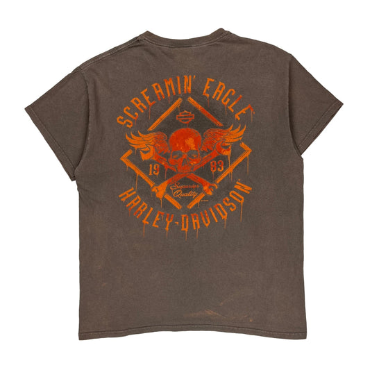Harley Davidson Graphic T-Shirt - Large Brown Cotton