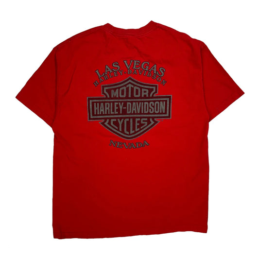 Las Vegas Harley Davidson Graphic T-Shirt - Large Red Cotton