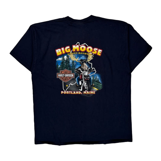 Big Moose Harley Davidson Graphic T-Shirt - 2XL Navy Cotton