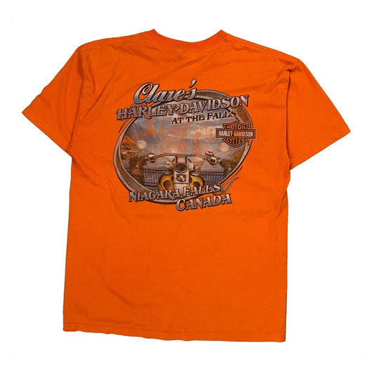 Harley Davidson Graphic T-Shirt - Large Orange Cotton Blend