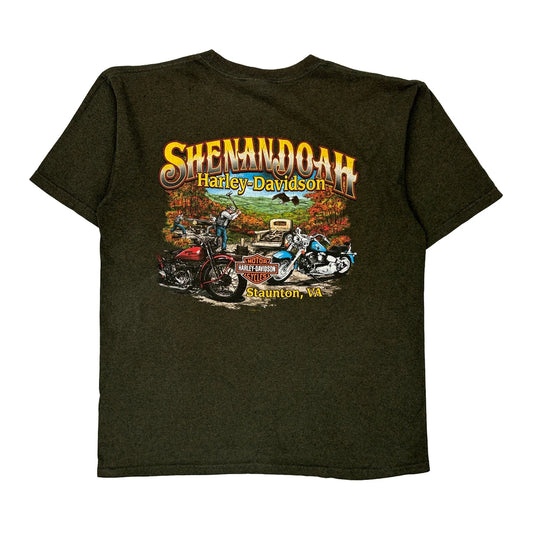 Shenandoah Harley Davidson Graphic T-Shirt - Large Green Cotton