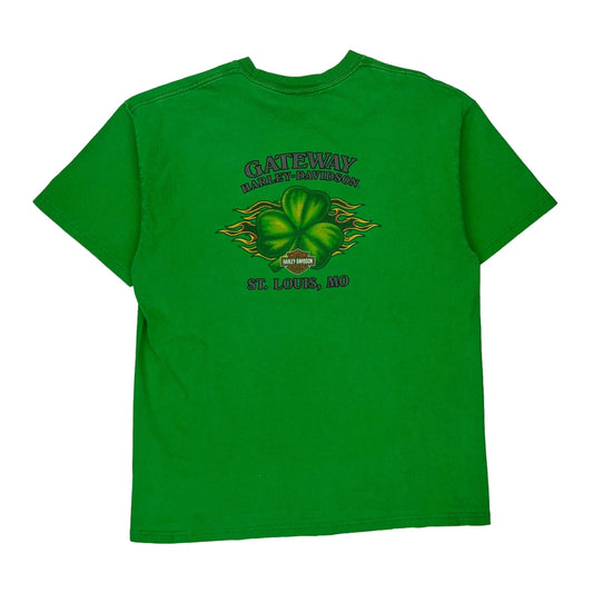Harley Davidson Graphic T-Shirt - Medium Green Cotton