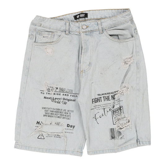 Up Gent Denim Shorts - 34W 11L Light Wash Cotton