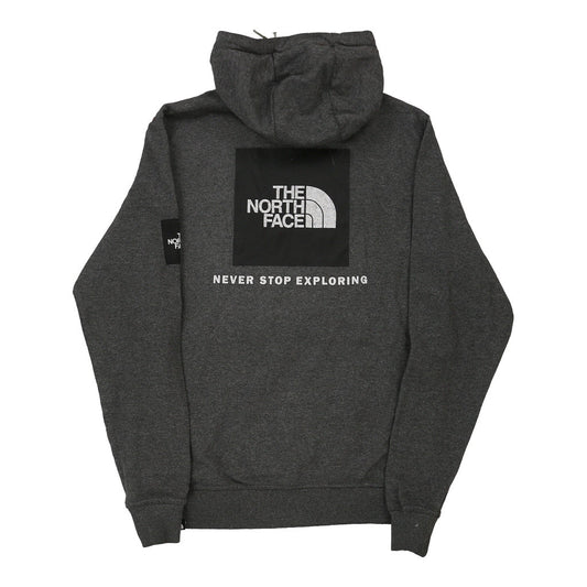 The North Face Spellout Hoodie - Small Grey Cotton Blend