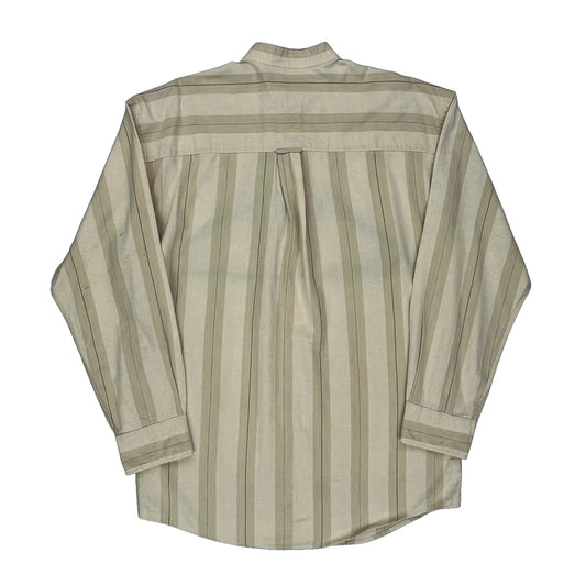 Chaps Ralph Lauren Striped Collarless Shirt - Medium Beige Cotton