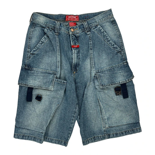 Machine Cargo Denim Shorts - 30W 11L Blue Cotton