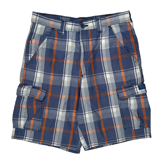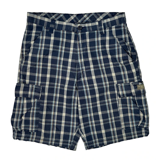 Wrangler Checked Cargo Shorts - 30W 10L Blue Cotton