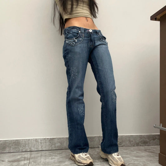 One 5 One Embroidered Jeans - 30W UK 8 Blue Cotton