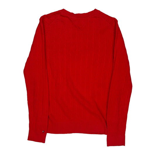 Tommy Hilfiger Cable Knit Jumper - Large Red Cotton