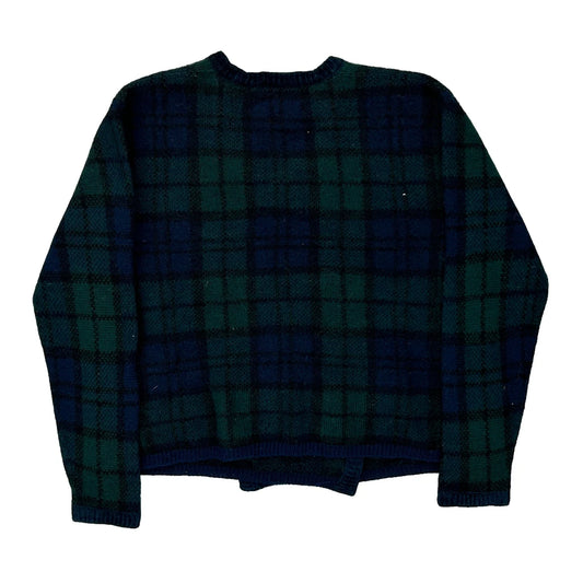 Petite Pendleton Checked Cardigan - Medium Blue Virgin Wool