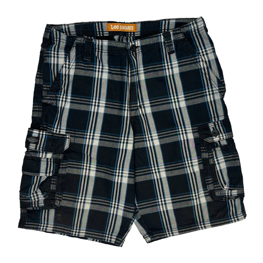 Lee Checked Cargo Shorts - 34W 10L Blue Cotton