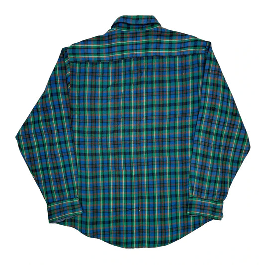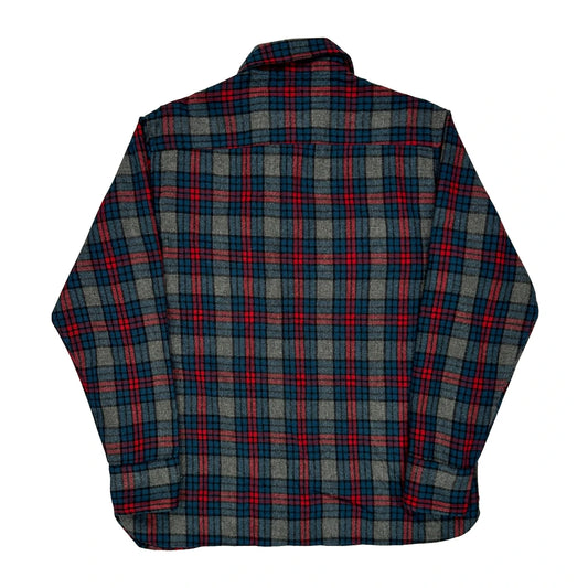 Sears Checked Flannel Shirt - Medium Blue Wool Blend