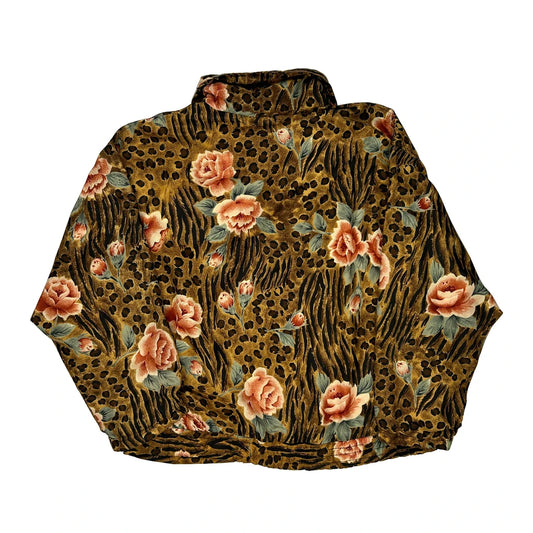 1980'S Evr Floral Shell Jacket - Large Brown Polyester