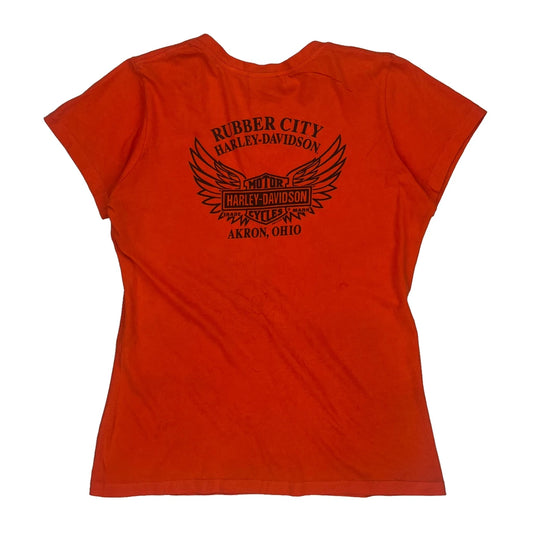 Made In USa Rubber City Harley Davidson T-Shirt - Large Orange Cotton