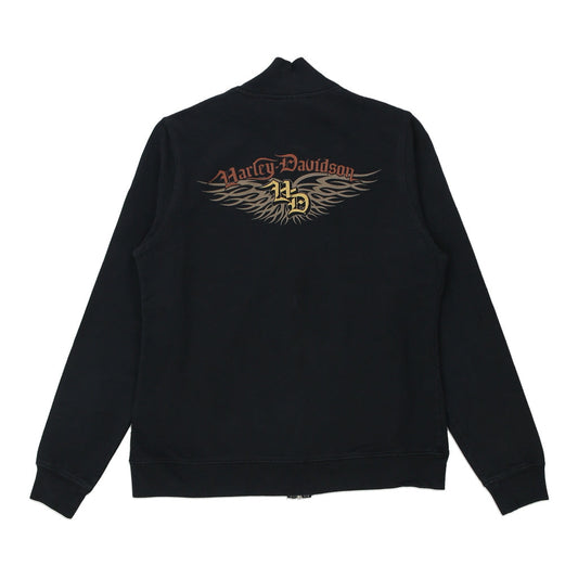 Harley Davidson Embroidered Zip Up - Small Black Cotton Blend