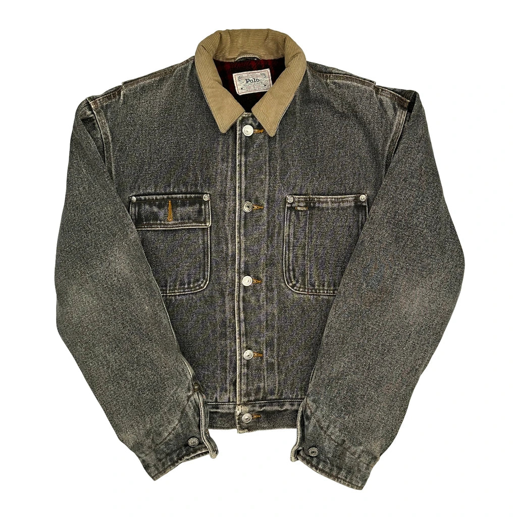 Versace Jeans Couture Contrast Stitch Denim Jacket - Small Black Cotton