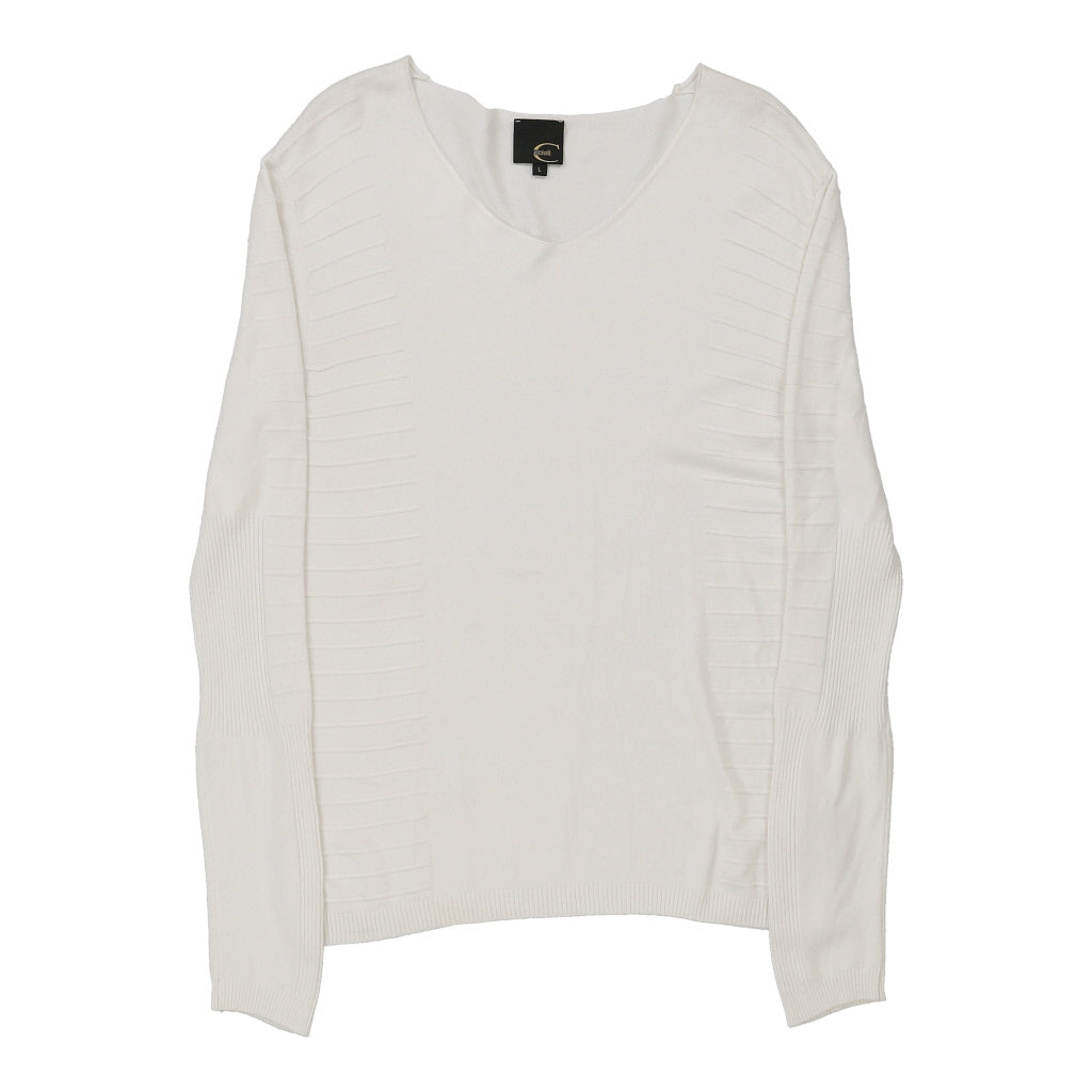 Just Cavalli V-neck Jumper - Large White Cotton