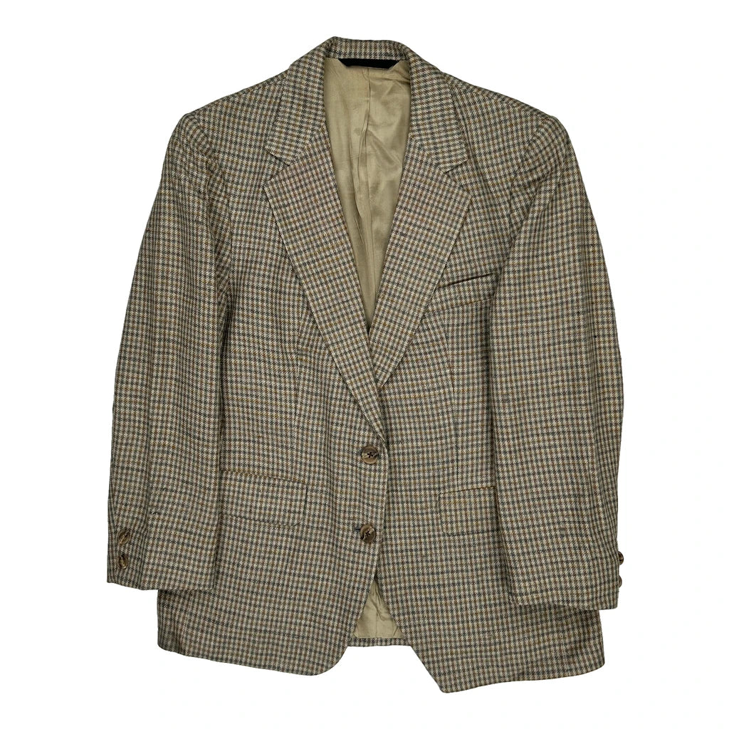 Burberry Checked Blazer - Large Brown Wool Blend