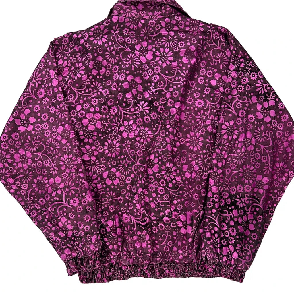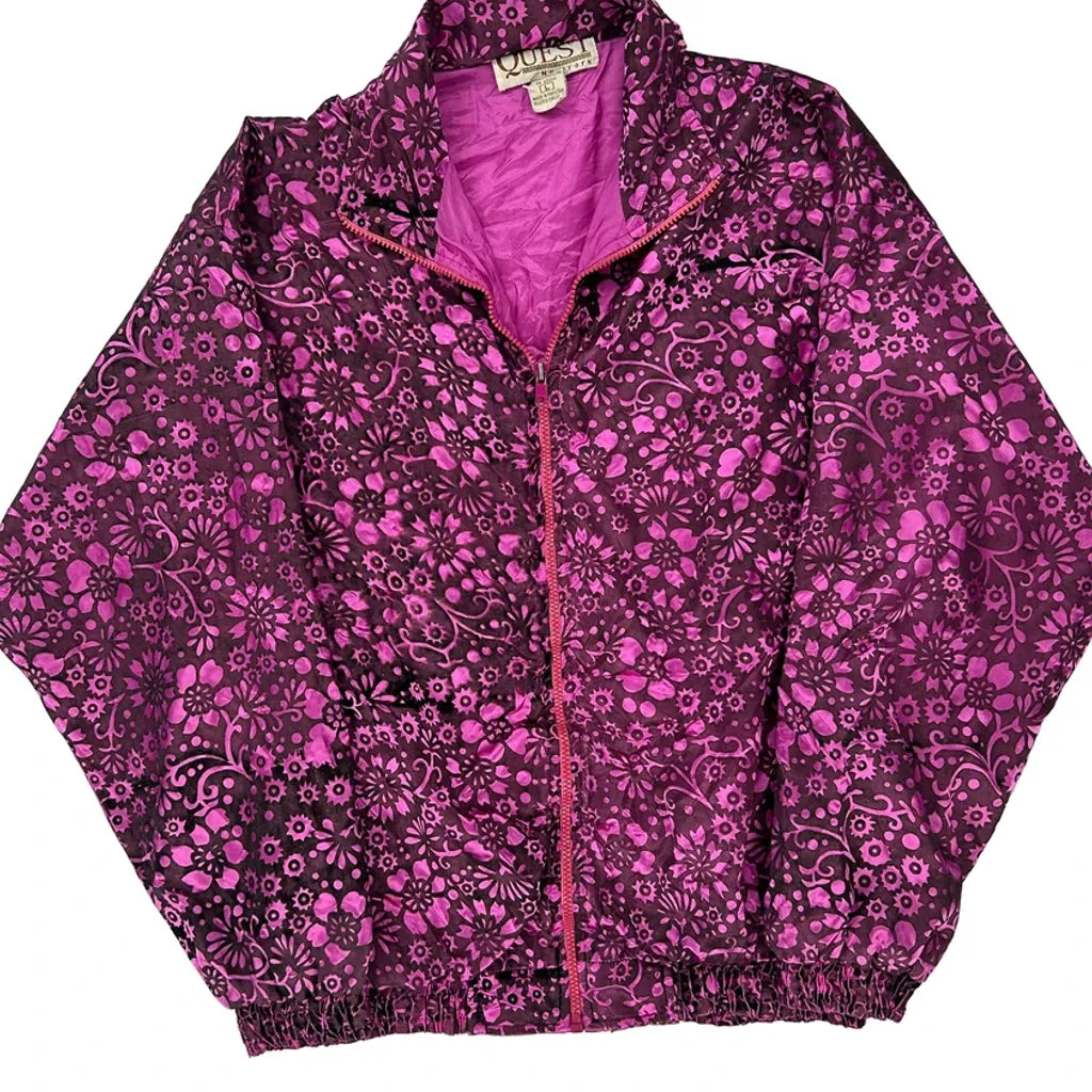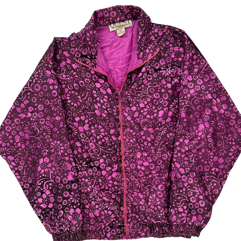 1980'S Quest Floral Shell Jacket - Large Purple Polyester