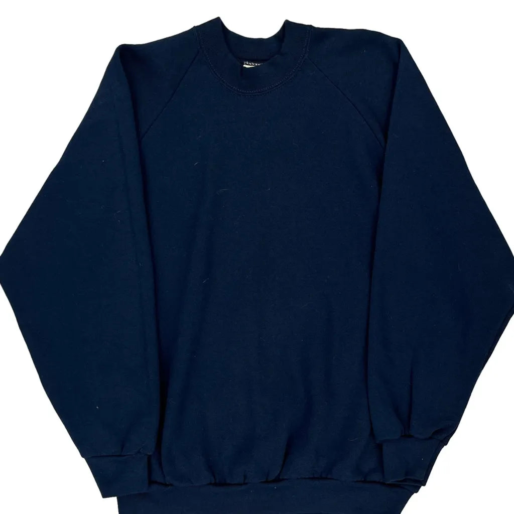 90S Blank Fruit Of The Loom Sweatshirt - Large Navy Cotton Blend
