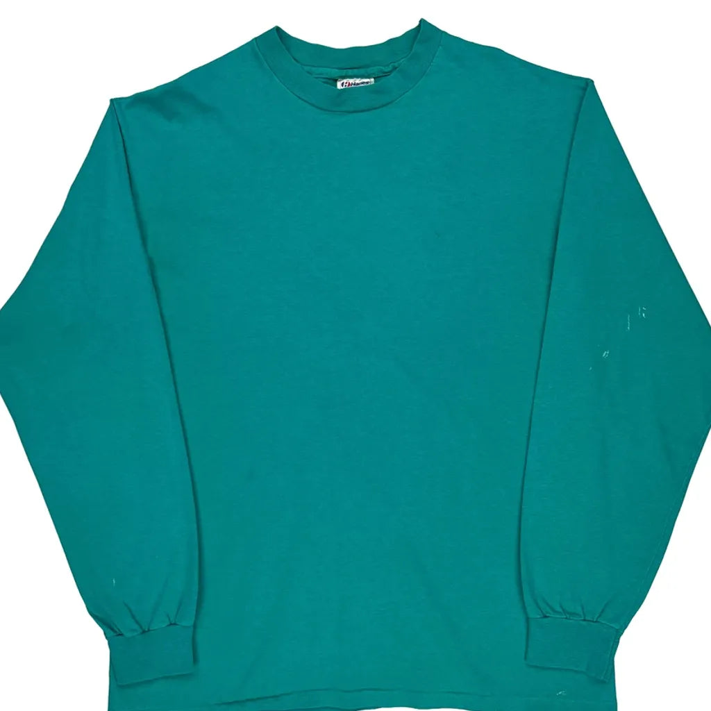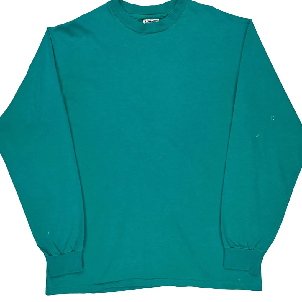90S Blank Hanes Long Sleeve T-Shirt - XL Green Cotton