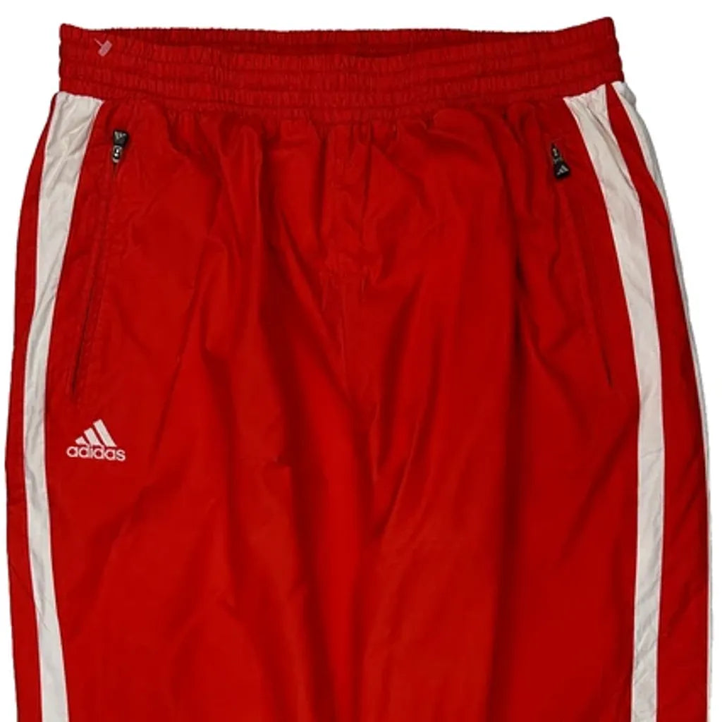 Red Adidas Tracksuit Bottoms With White Stripes.