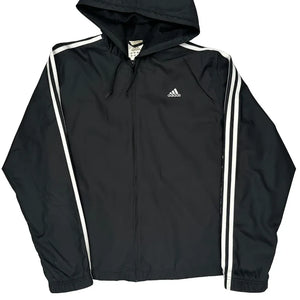 Adidas Striped Windbreaker - Large Black Polyester