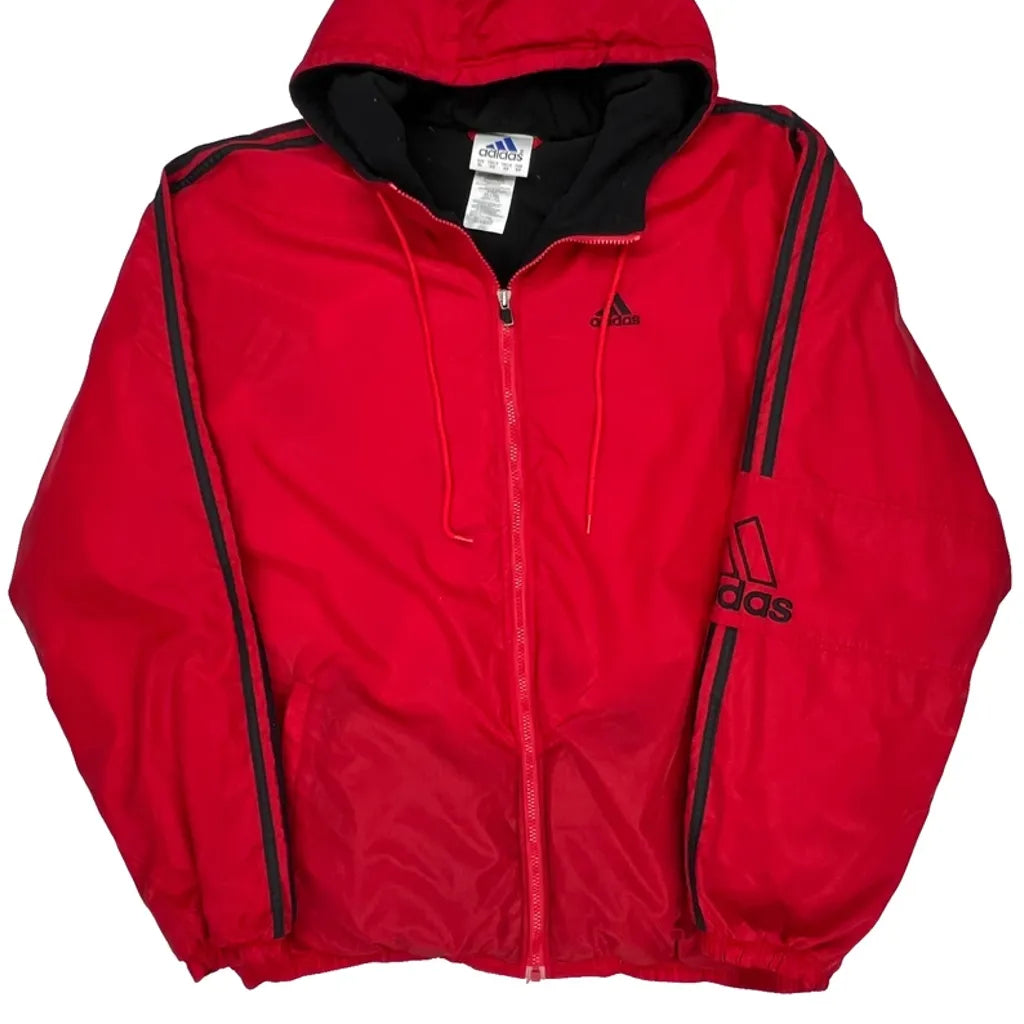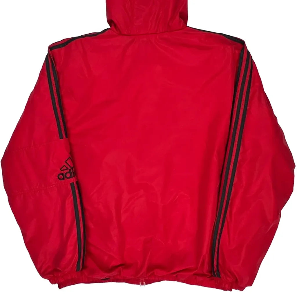 Red Adidas Windbreaker With Black Accents And Hood