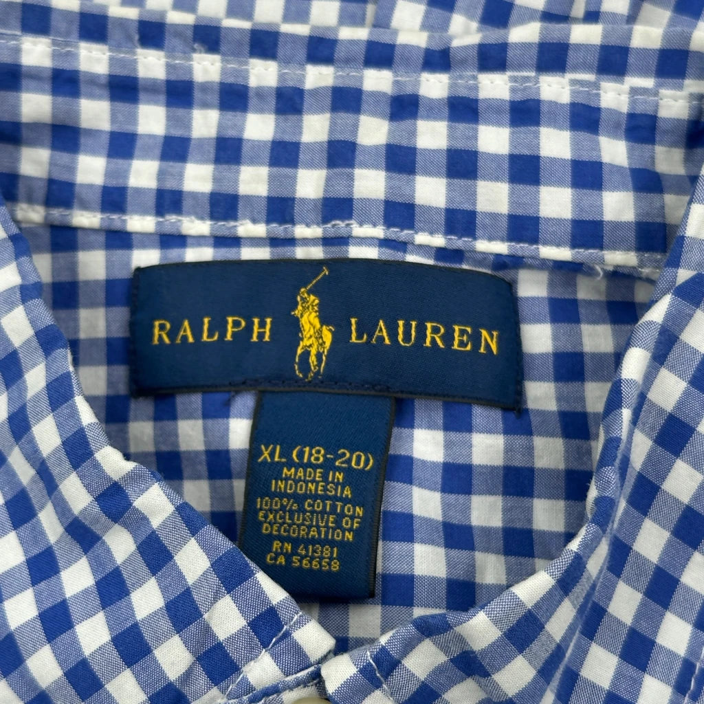 Age 13-14 Ralph Lauren Checked Shirt - XL Blue Cotton