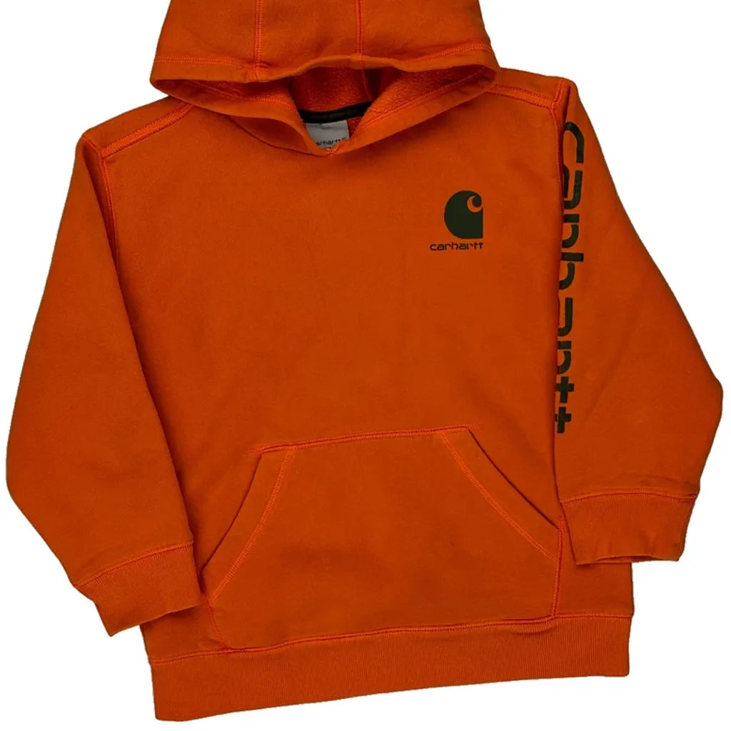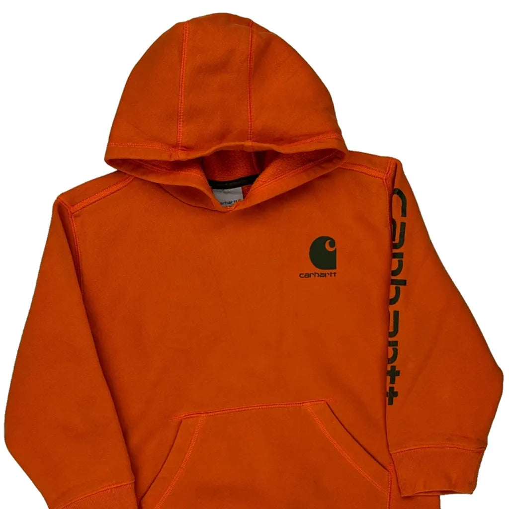 Age 8-10 Carhartt Spellout Hoodie - Small Orange Cotton