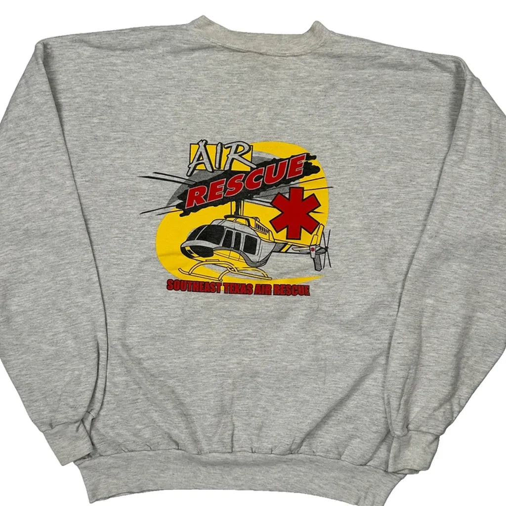Air Rescue Hanes Graphic Sweatshirt - Large Grey Cotton Blend