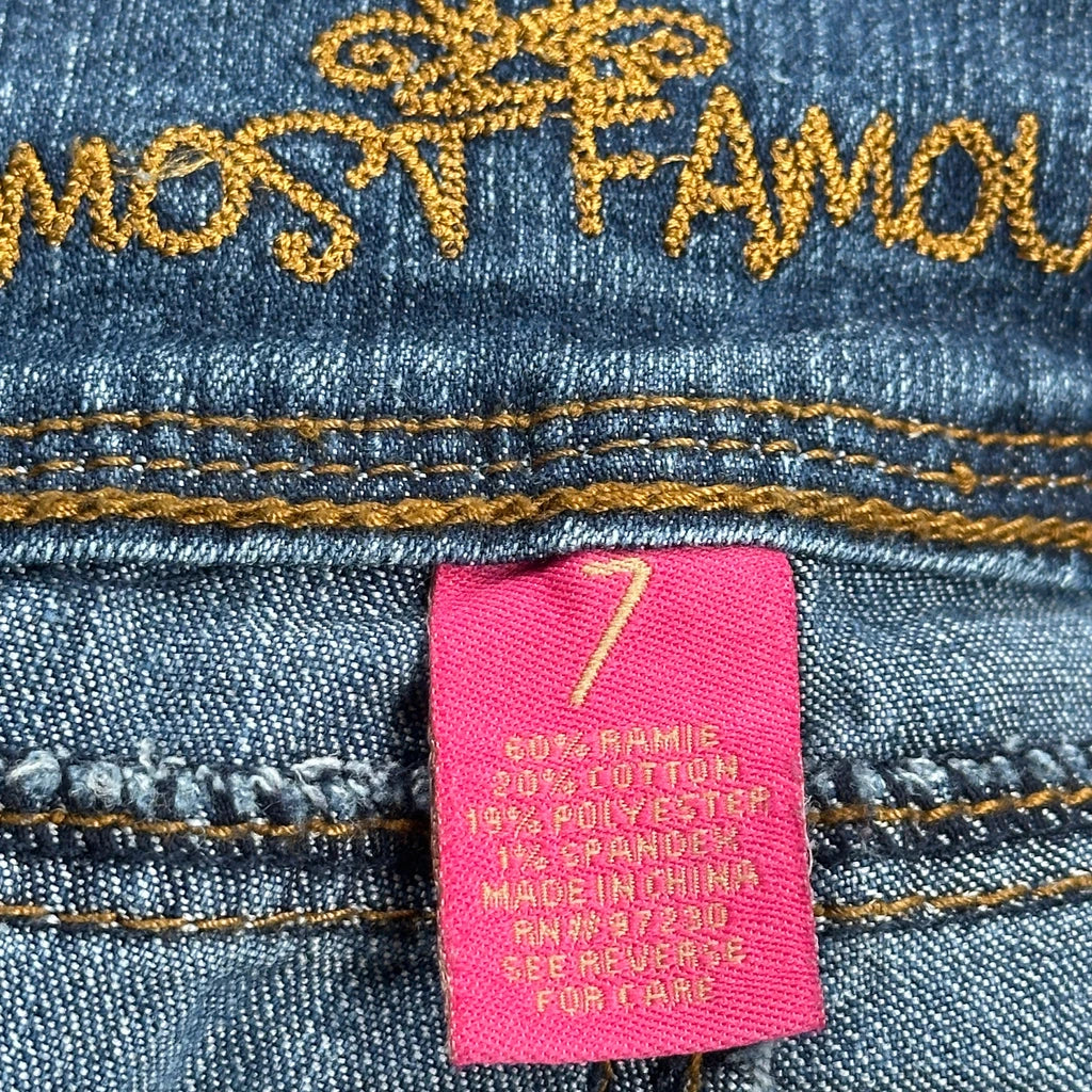 Almost Famous Jeans, fit a UK size 6 with a 28″ Waist.