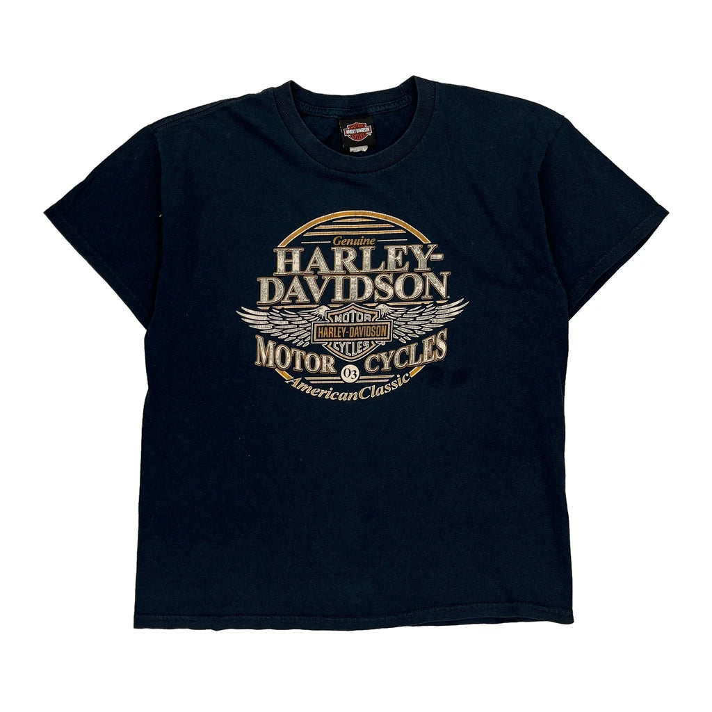 American Classic Harley Davidson Graphic T-Shirt - Large Navy Cotton