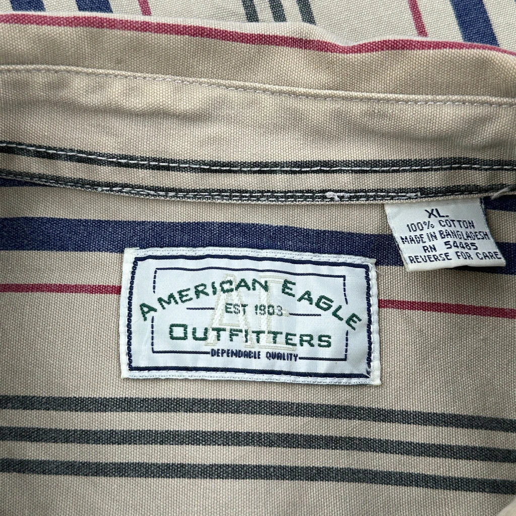 American Eagle Striped Shirt - XL Beige Cotton