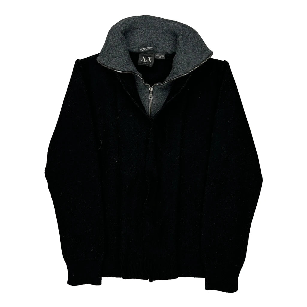 Armani Exchange Zip Up - Medium Black Merino Wool