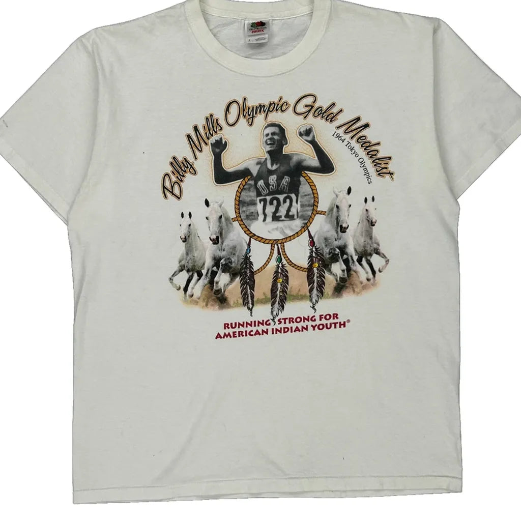 Billy Mills Olympic Gold Medalist Fruit Of The Loom Graphic T-Shirt - Large White Cotton