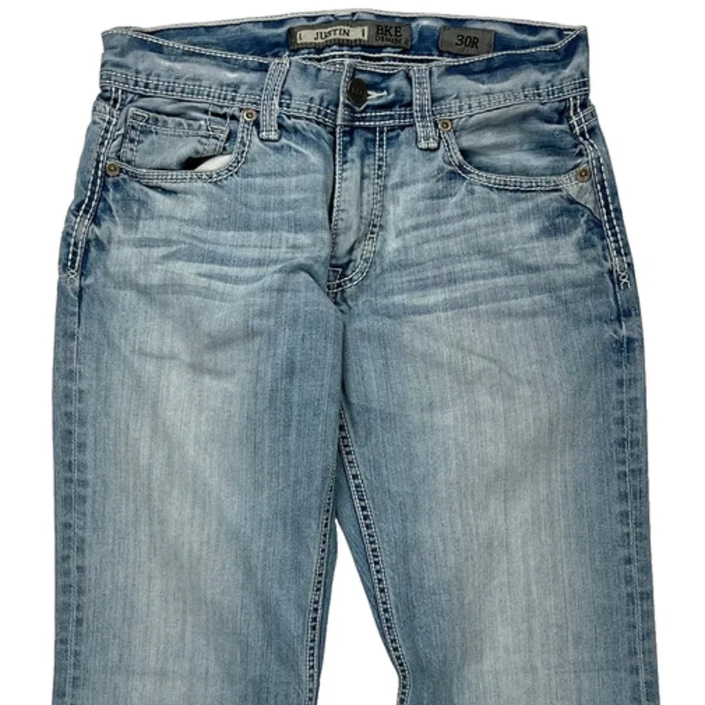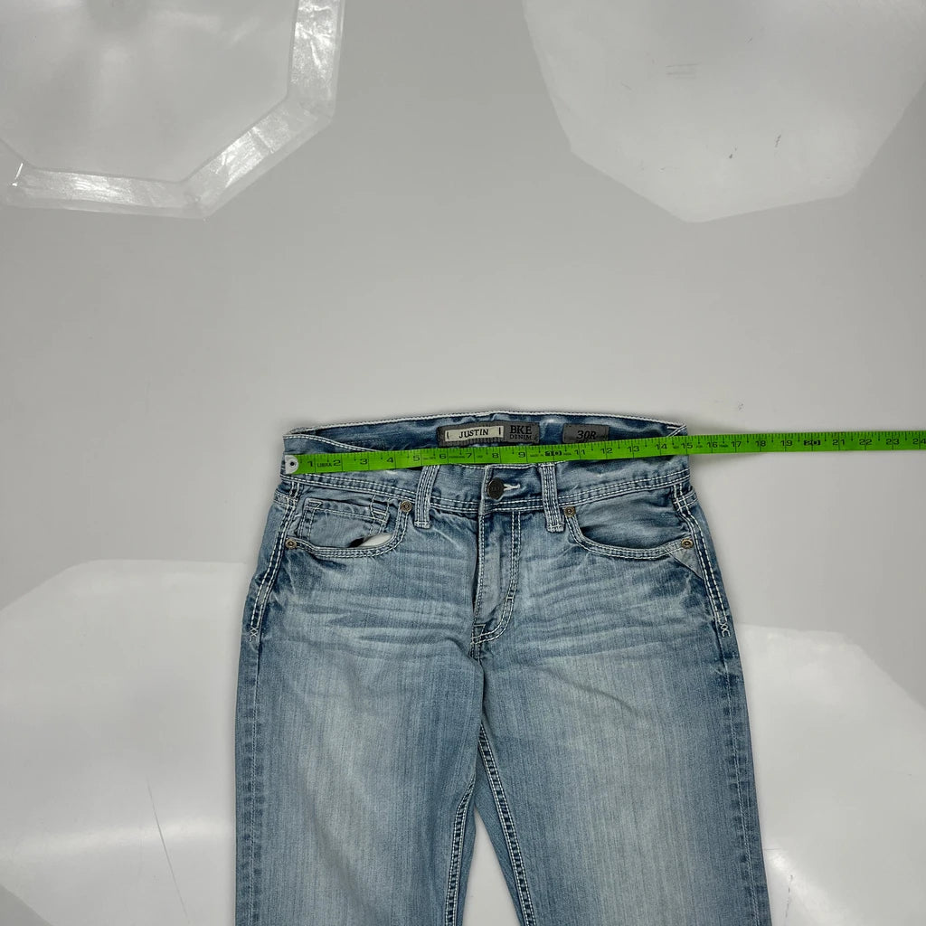 Bke Jeans, fit a 30″ Waist and 31″ inseam.