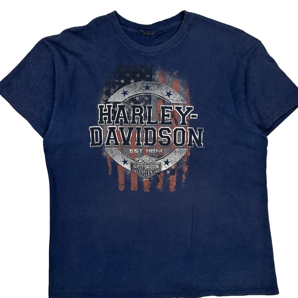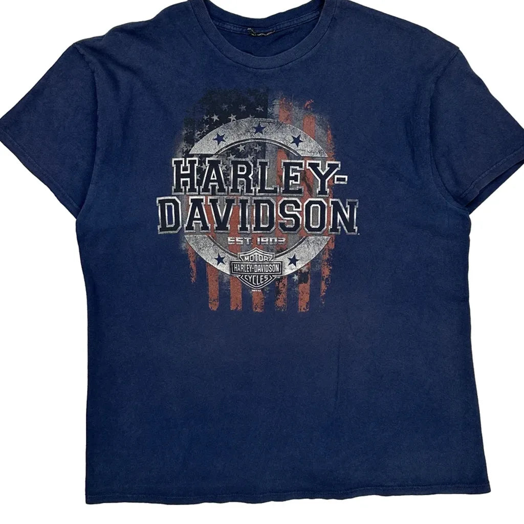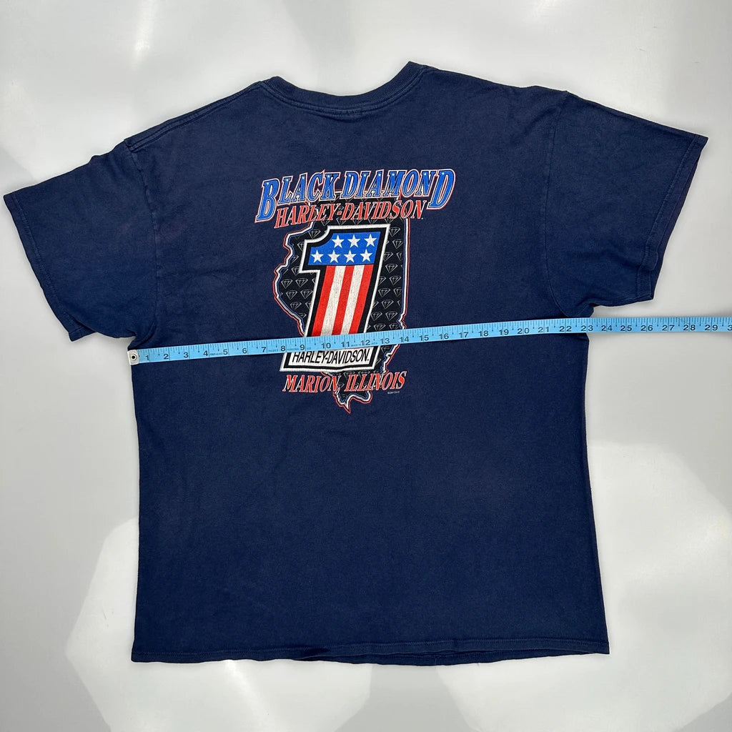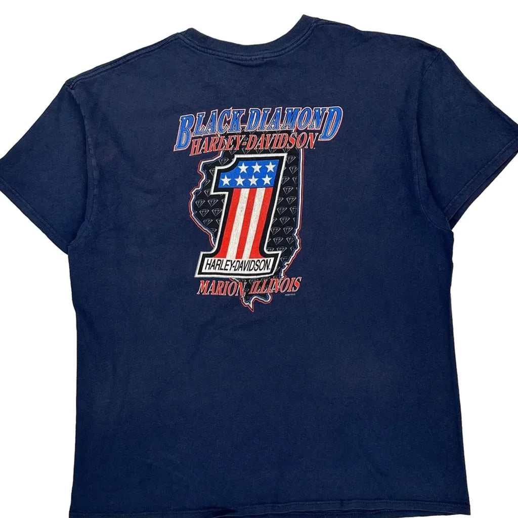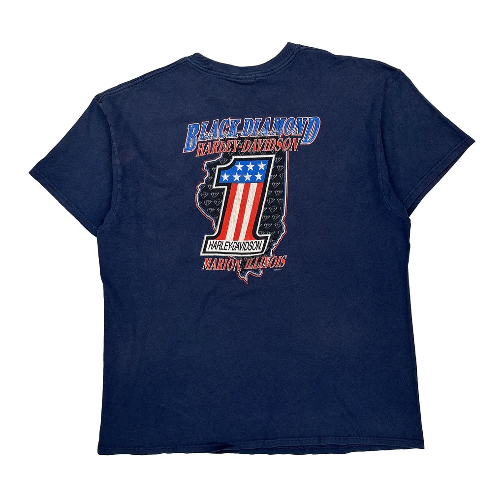 Black Diamond Harley Davidson Graphic T-Shirt - Large Blue Cotton