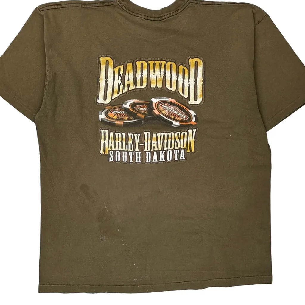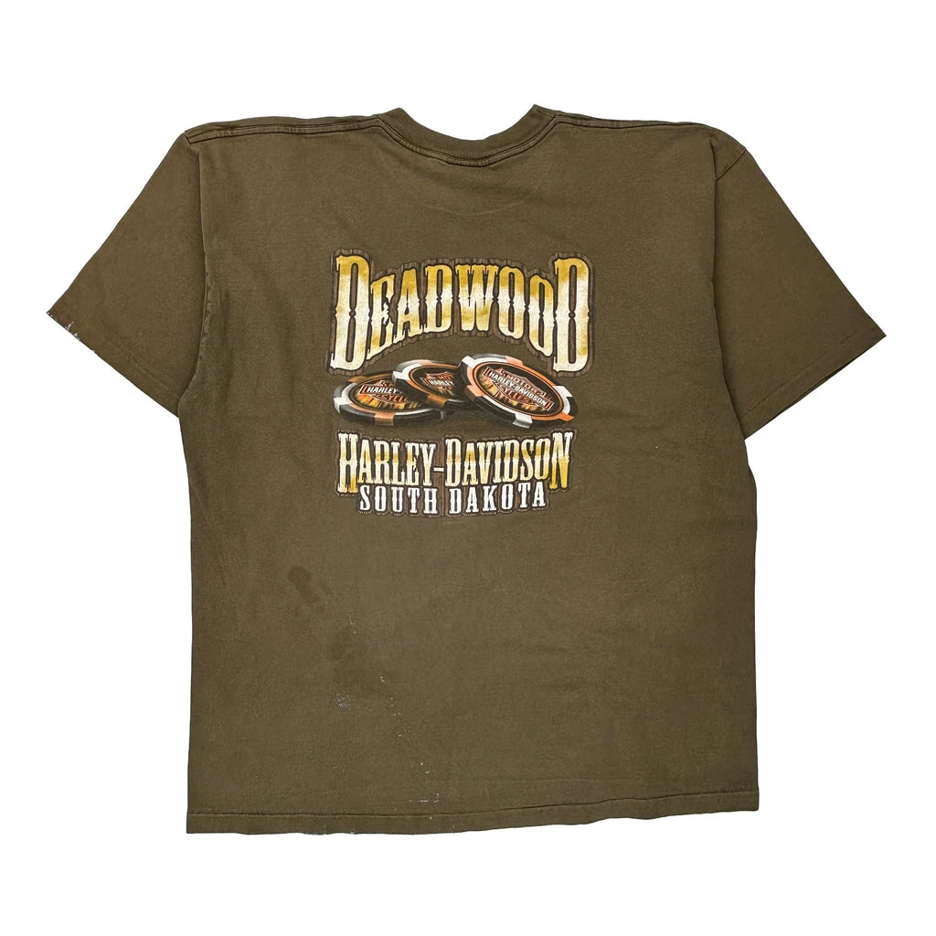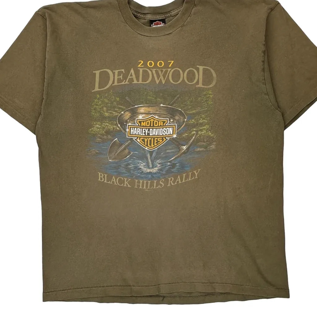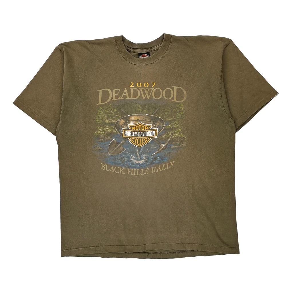 Black Hills Rally Harley Davidson Graphic T-Shirt - 2XL Brown Cotton