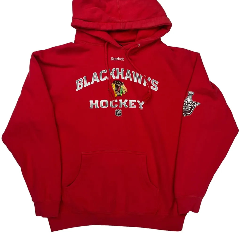 Blackhawks Reebok Hoodie - Large Red Cotton Blend